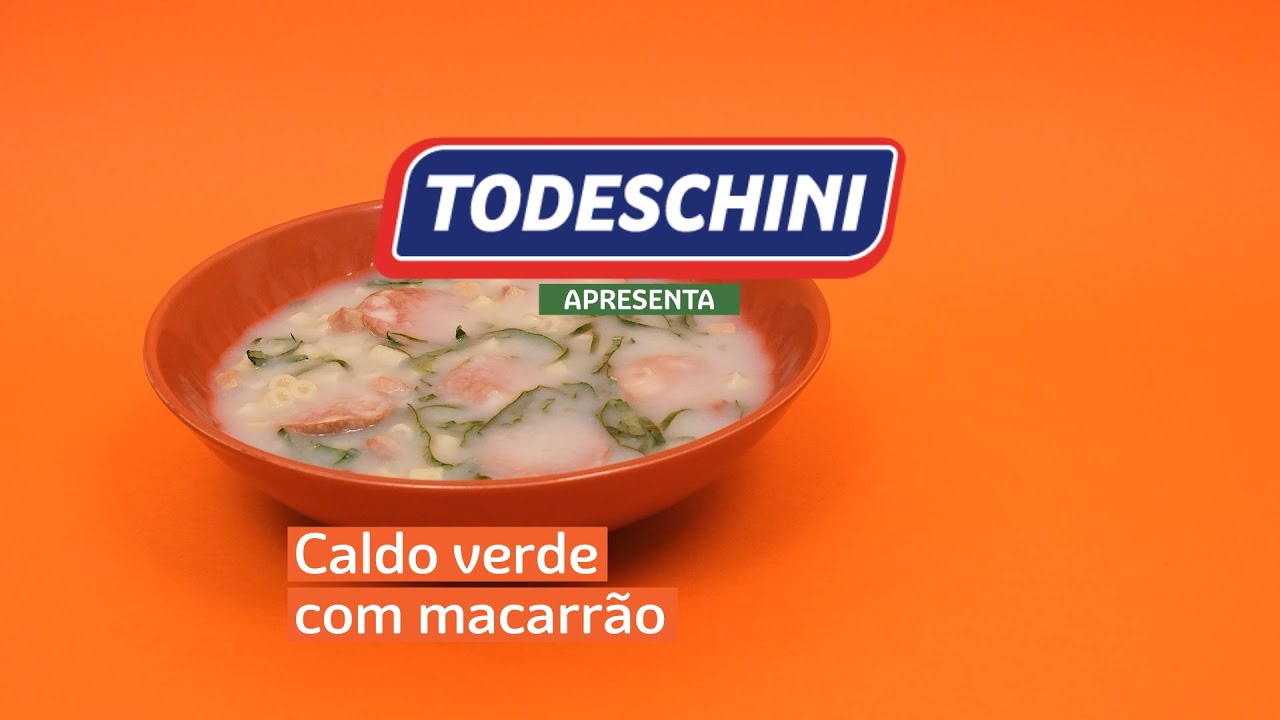 Receita de caldo verde com calabresa, couve, batata e bacon, além de MacarrãoTODESCHINI Com Ovos Ave Maria.