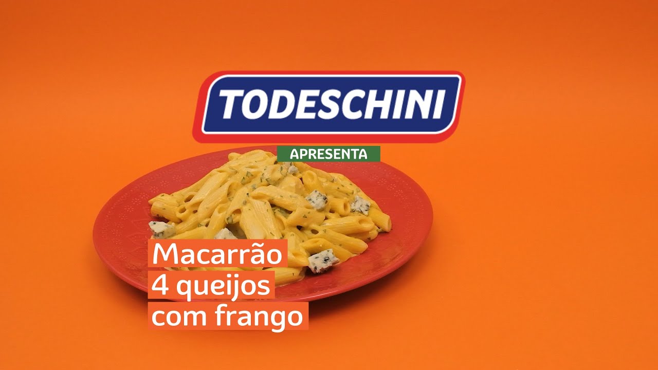 Molho de 4 queijos com frango em cubos acompanha o Macarrão Todeschini Pena nessa receita.