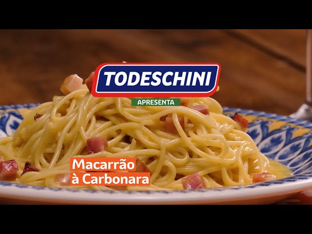 Macarrão Todeschini Spaghetti ao molho cremoso de bacon com ovos.