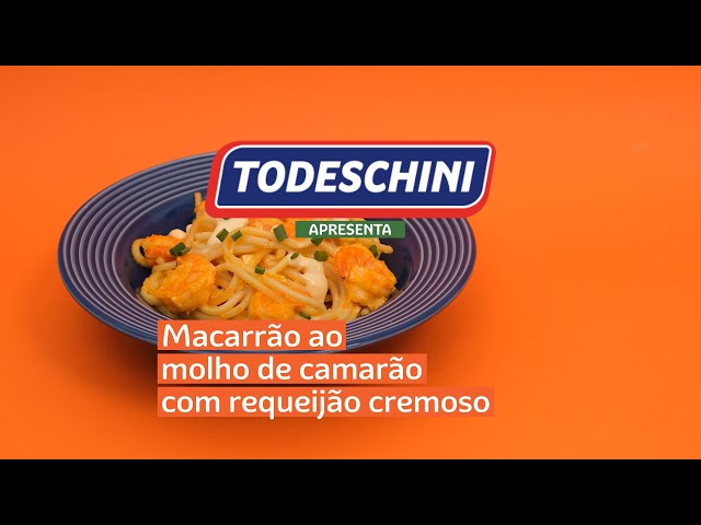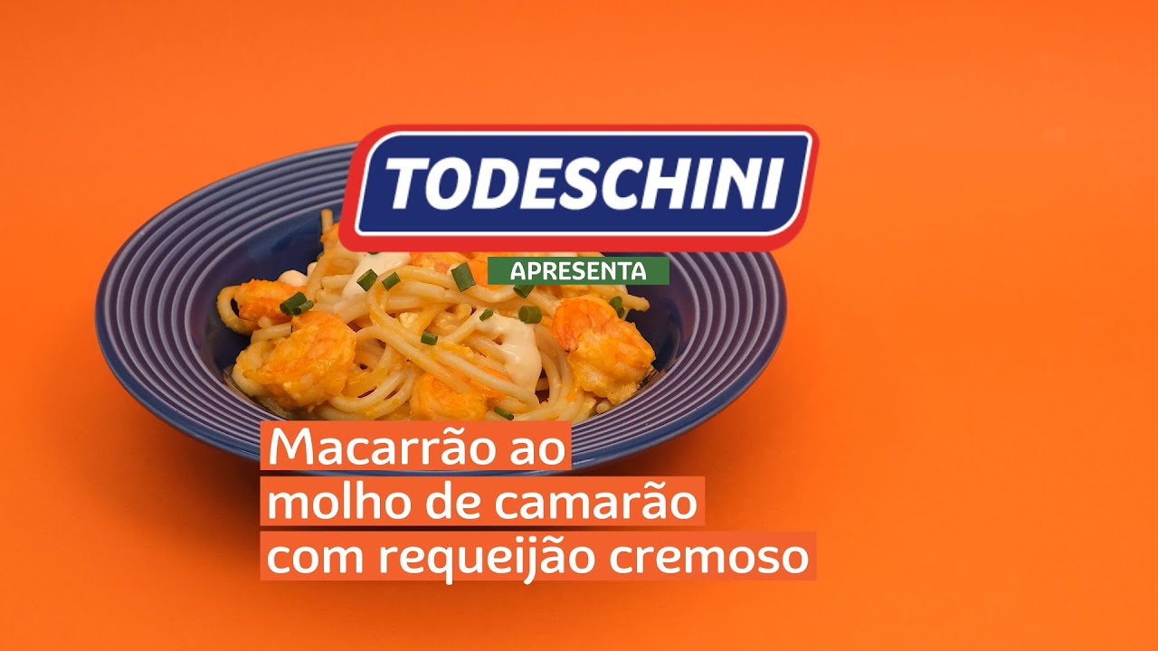 Receita de Macarrão Todeschini Com Ovos Furadinho acompanhado de molho de camarão com requeijão cremoso.