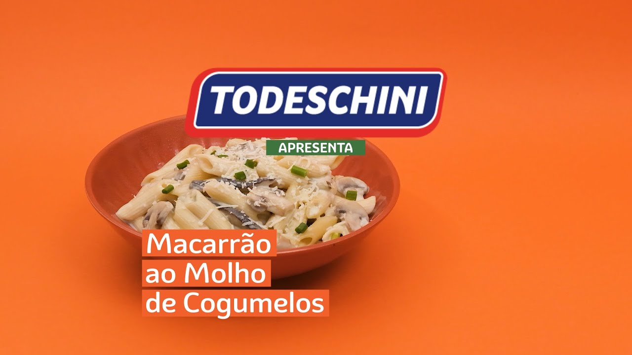 Macarrão Todeschini Pena preparado com cogulemo paris, shitake e creme de leite. Finalizado com parmesão.