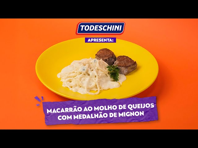 Macarrão ao Molho de Queijos com Medalhão de Mignon