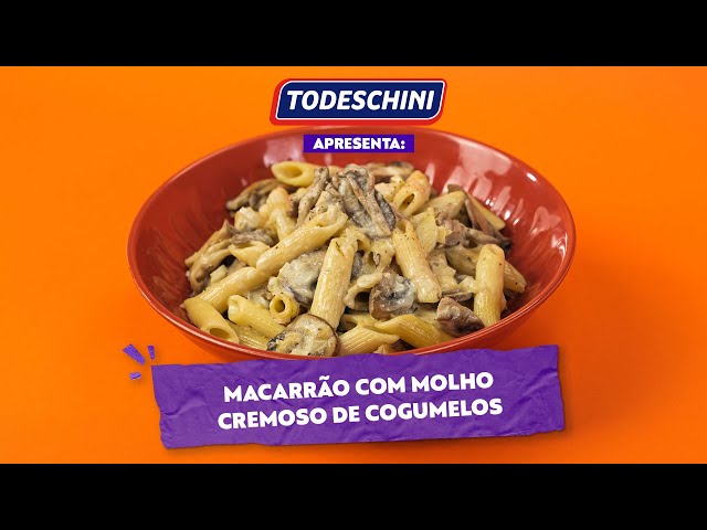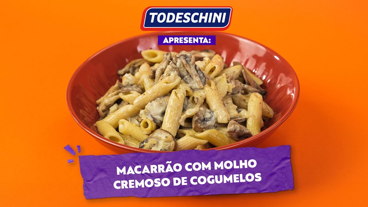 Prato cremoso de macarrão com um molho à base de cogumelos refogados, creme de leite e queijo parmesão, ideal para um jantar reconfortante.