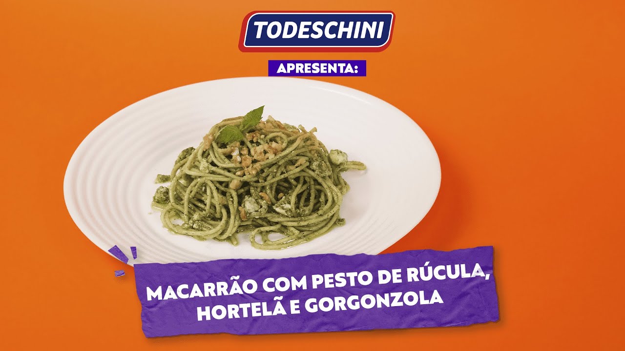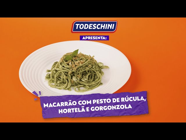 Macarrão com Pesto de Rúcula, Hortelã e Gorgonzola