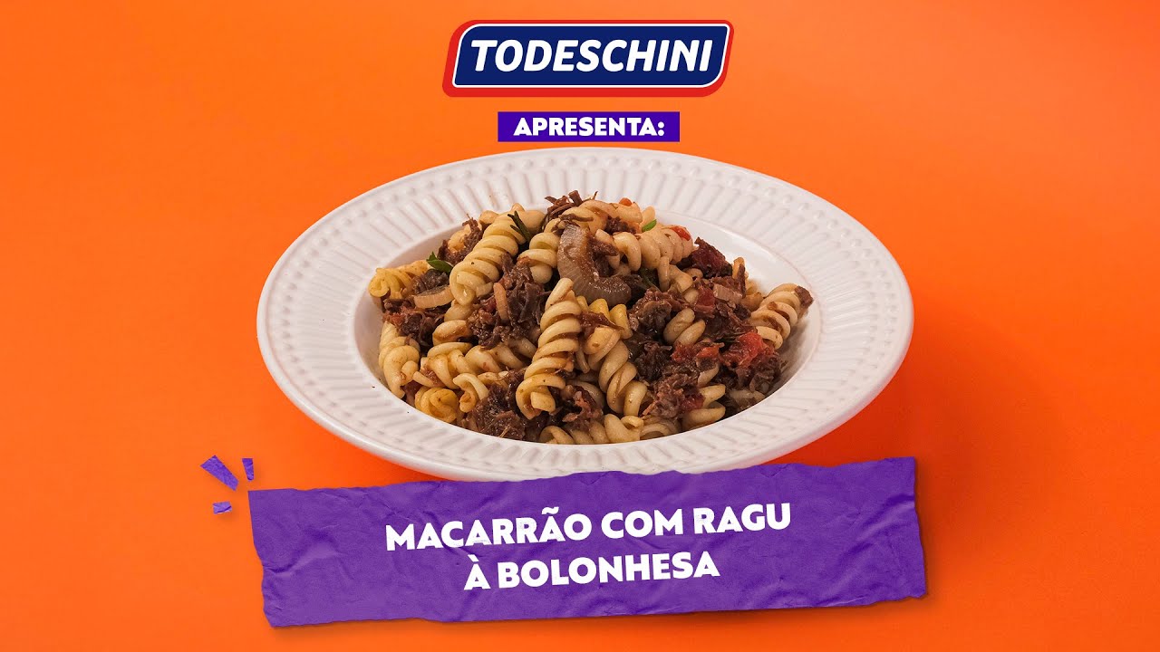 Uma receita clássica e reconfortante de macarrão com ragu à bolonhesa, feito com carne bovina, tomate pelado, vinho tinto e caldo de legumes, ideal para um almoço saboroso e completo.