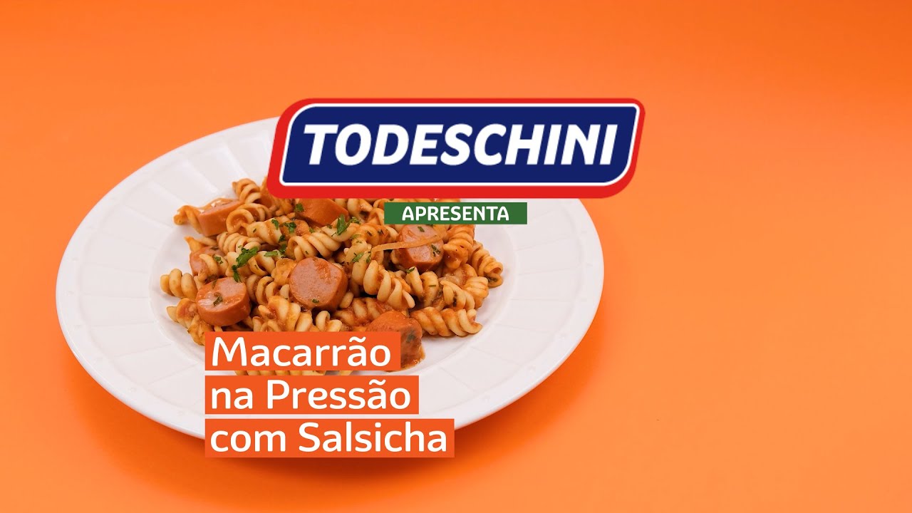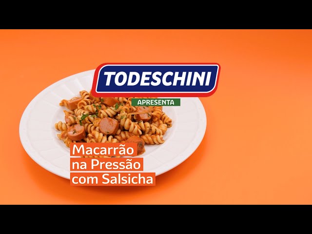 Macarrão TODESCHINI Com Ovos Parafuso feito na panela de pressão com molho de tomate e salsicha.