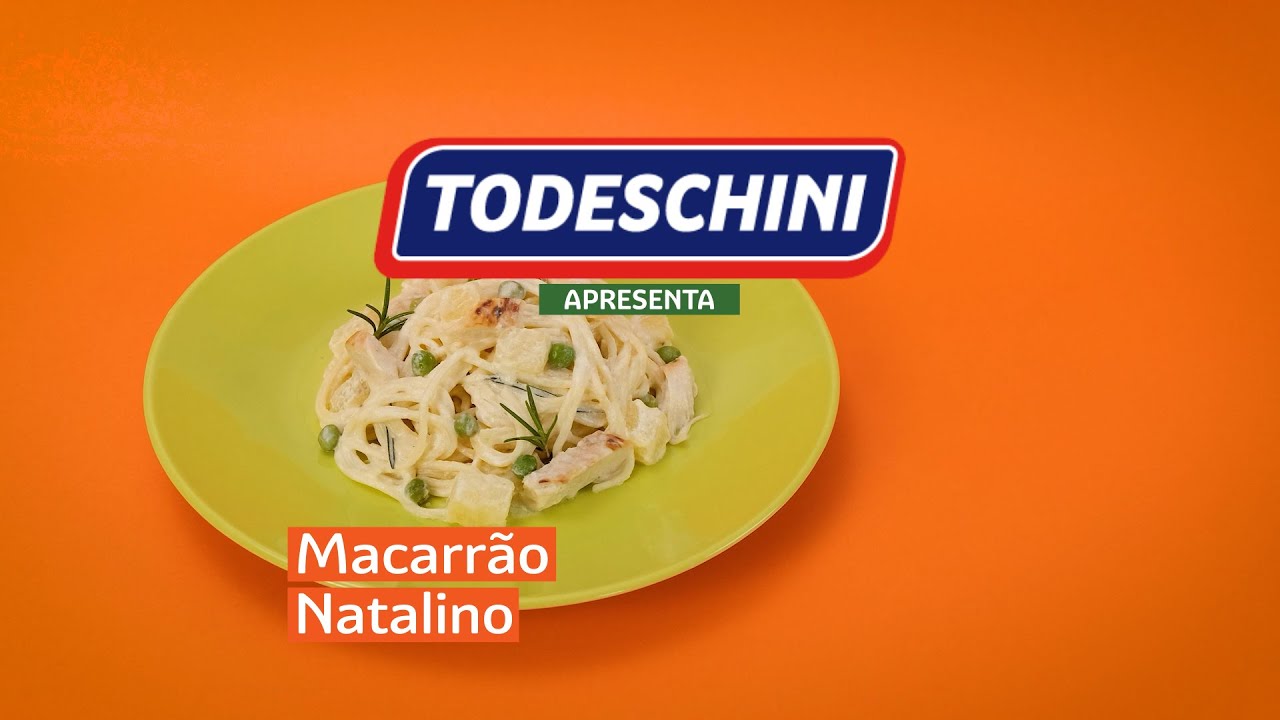Receita de Macarrão Todeschini com Ovos Spaghettini ao molho com abacaxi, ervilhas e frango em pedaços.