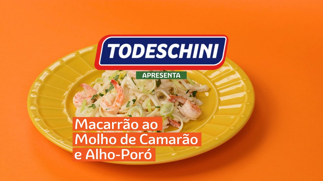 Macarrão Todeschini Com Ovos Talharim Ninhos ao molho de camarão refogado com alho-poró.
