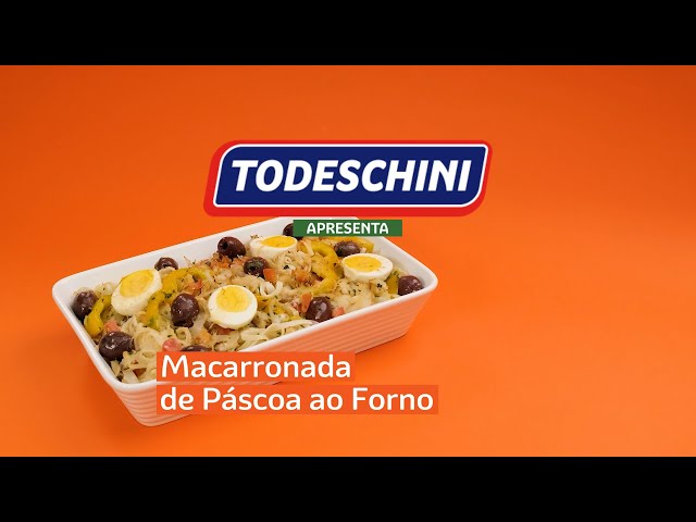 Macarrão TODESCHINI Com Ovos Talharim Ninhos com bacalhau, azeitonas, tomate, pimentão e ovos cozidos, gratinado ao forno.