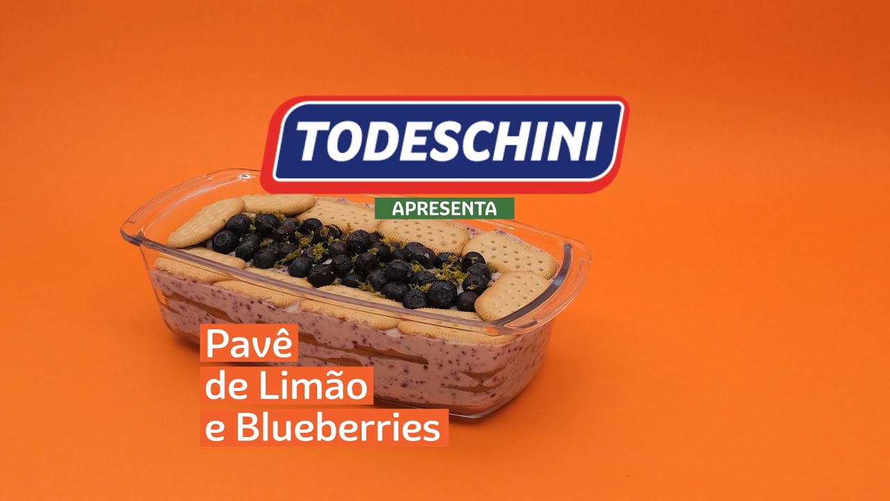 Sobremesa cremosa feita em camadas. Leva Biscoito Todeschini Maizena e creme de limão com blueberries.